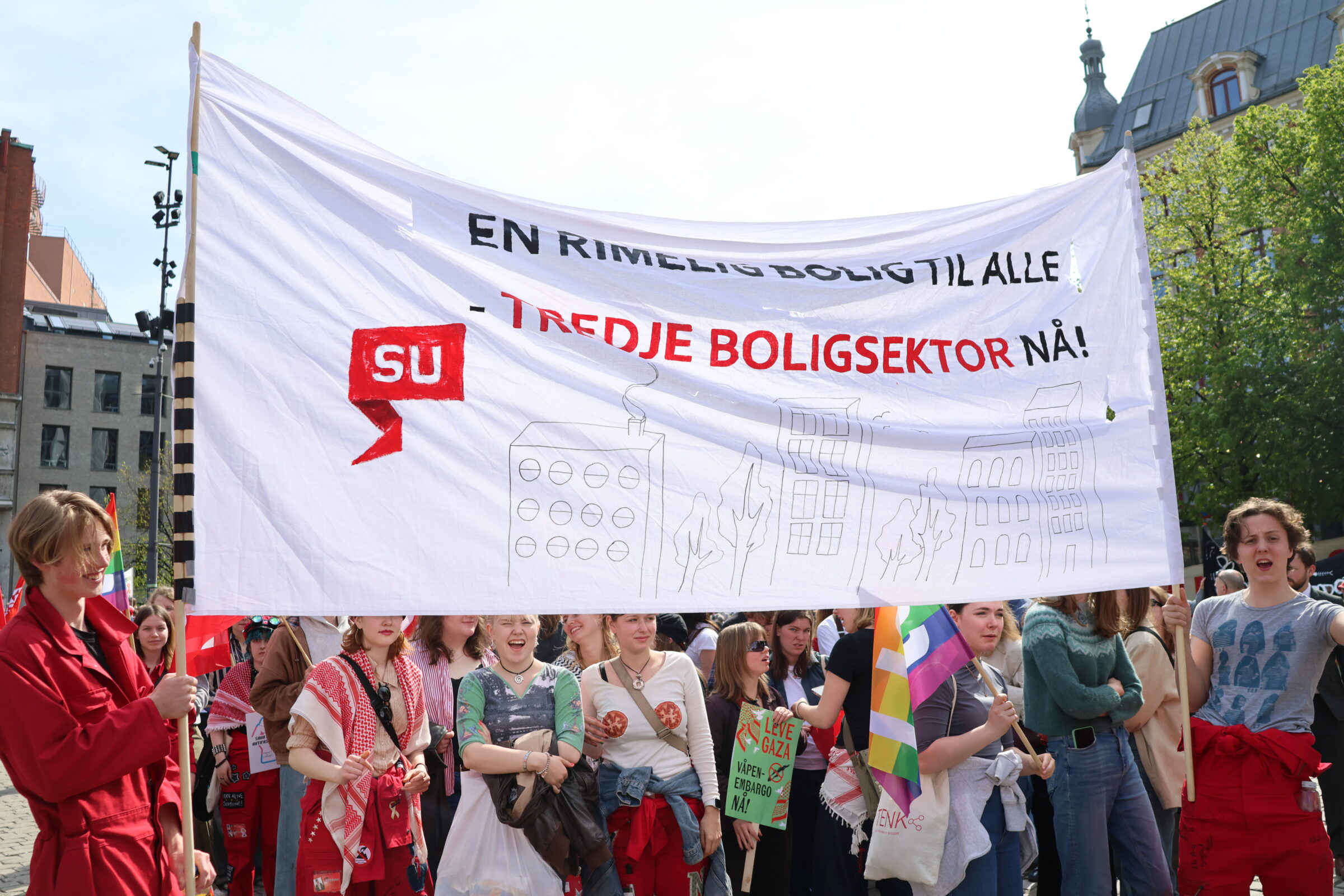 Det norske boligmarkedet er et av Europas minst regulerte boligmarkeder, dette går på bekostning av alle som leier og unge som ikke kommer inn på boligmarkedet. Vi krever en mer omfordelende og rettferdig boligpolitikk, fordi boliger skal være hjem – ikke spekulasjonsobjekter.