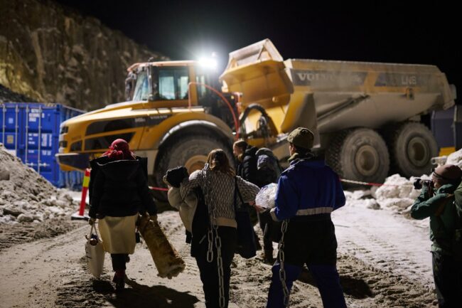Inne på indre deltar både Vivian og Jonas fra sentralstyret. Der ble vi fortalt at dersom politiet kom ville man uten tvil bli båret bort, og trolig også bøtelegges. Det må man være innforstått med. Her ville det også være begrenset med varme, så her måtte man være godt kledd for å sitte.
